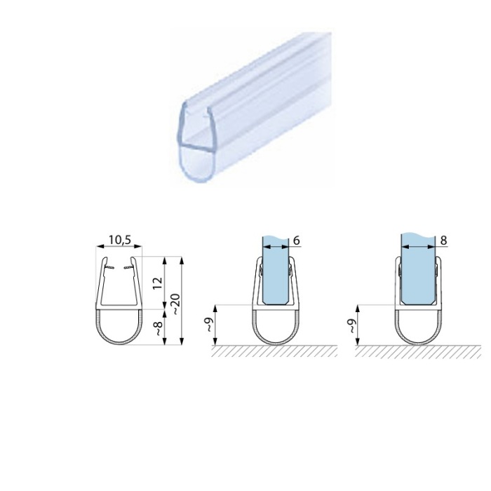 Gasket for 6 / 8mm glass – shower door seal / Bubble seal