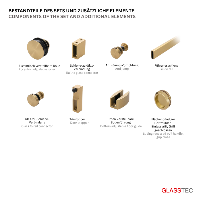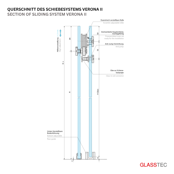 Suitable for both 8mm and 10mm toughened glass, this sliding system stands out with its durable stainless steel construction and reliable anti-jump mechanism, ensuring long-lasting stability and smooth operation.